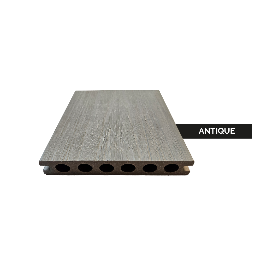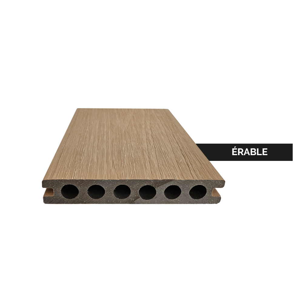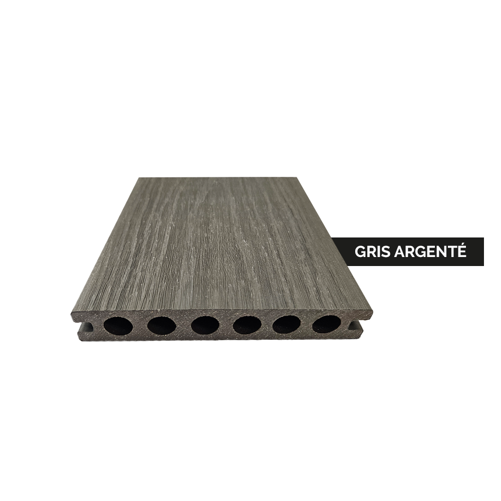Le bois de composite est issu d’une technologie de coextrusion qui permet de produire des planches qui conservent leur apparence au fil des années. Ce produit résiste à l’usure, ainsi qu’à une utilisation quotidienne. La solution idéale pour que votre terrasse traverse le temps, même face au climat québécois! La planche est offerte en 5 couleurs de base : antique, gris argenté, charbon, teck et érable.